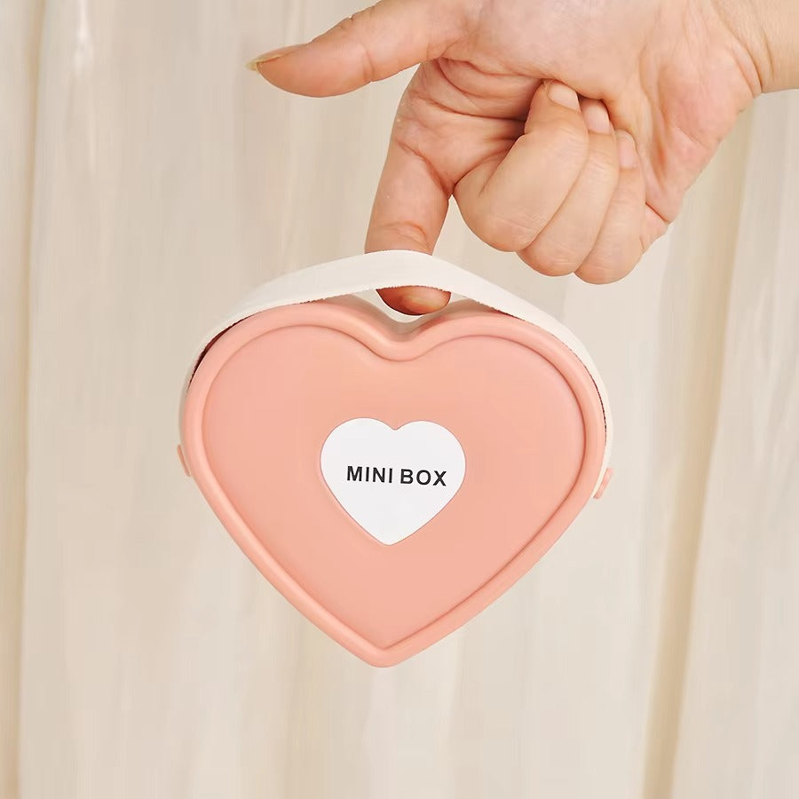 Pink Girl Double-Deck Plastic Cosmetic Storage Organizer Box with Heart Make up Mirror Display Necklace...