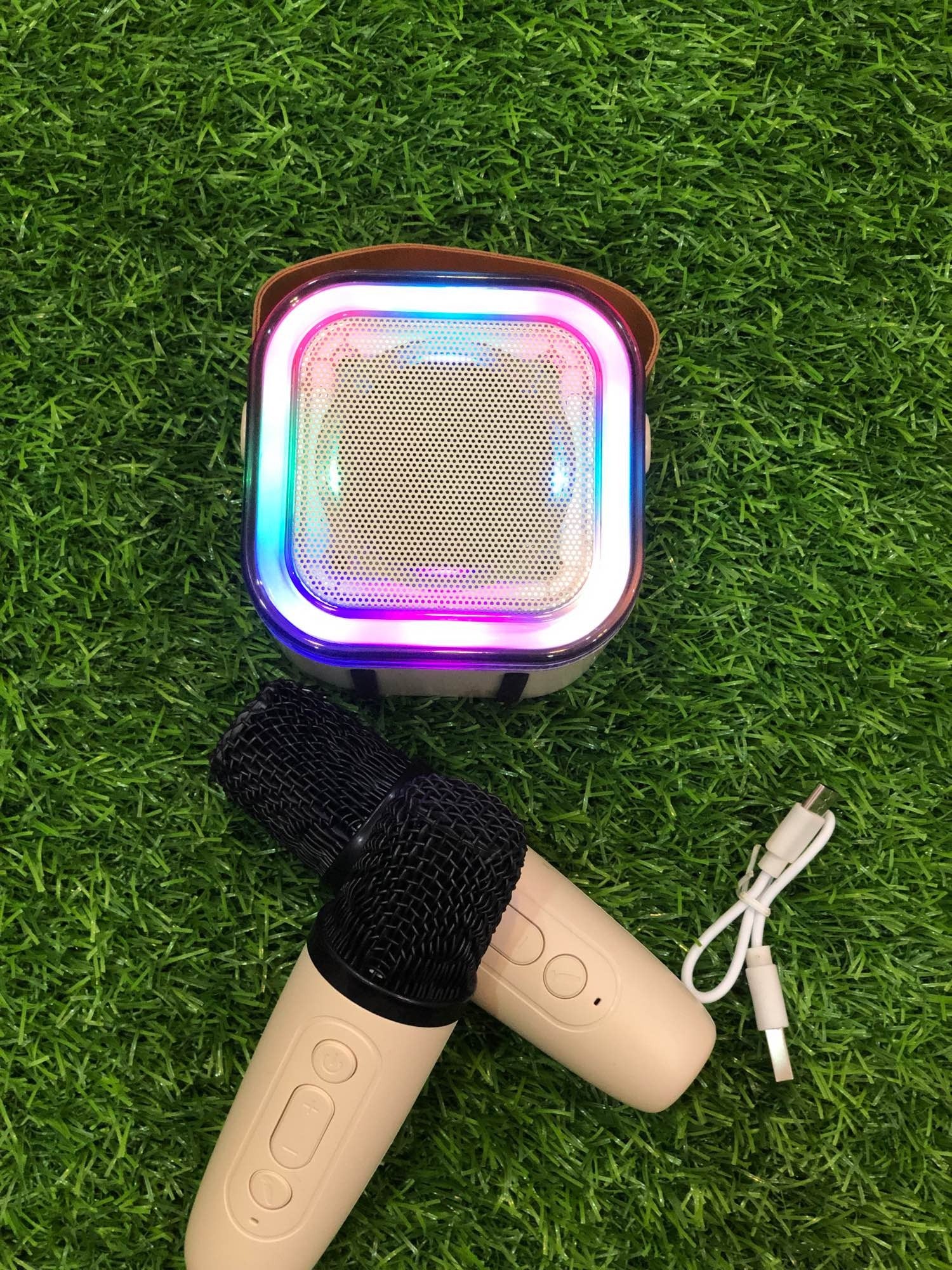 Wireless Karaoke Speaker with Two Mics, RGB Lights, and Rechargeable Battery